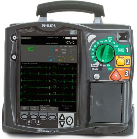 The Philips Heartstart MRx is a rugged and user-friendly defibrillator with superior parameter measurements a patented resuscitation waveform and CPR guidance. The HeartStart MRx is built toughtough enough to endure environmental conditions created by water vibrations mechanical shocks drops and electromagnetic activity. For whatever you face in a day the HeartStart MRx is built to be.